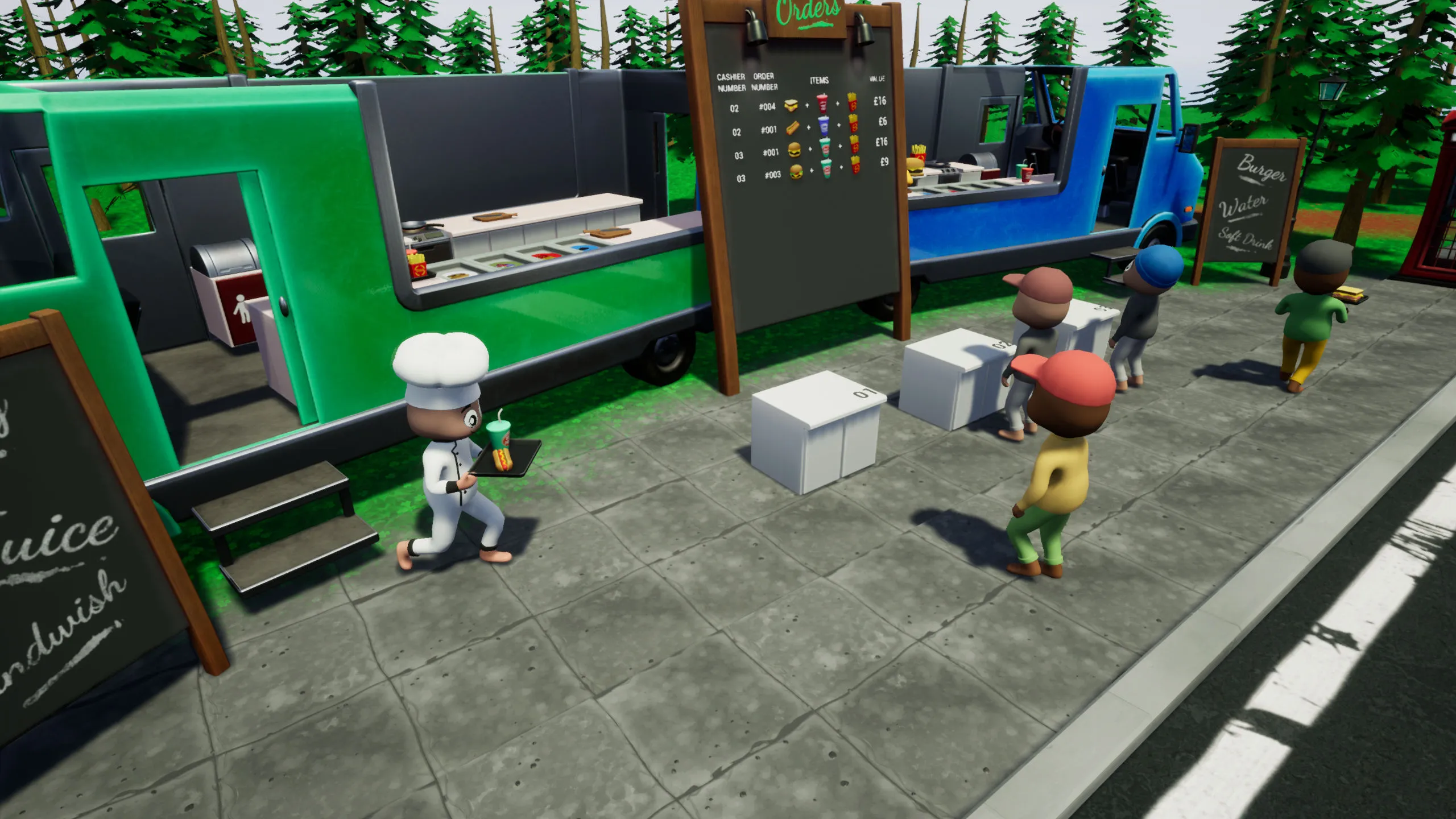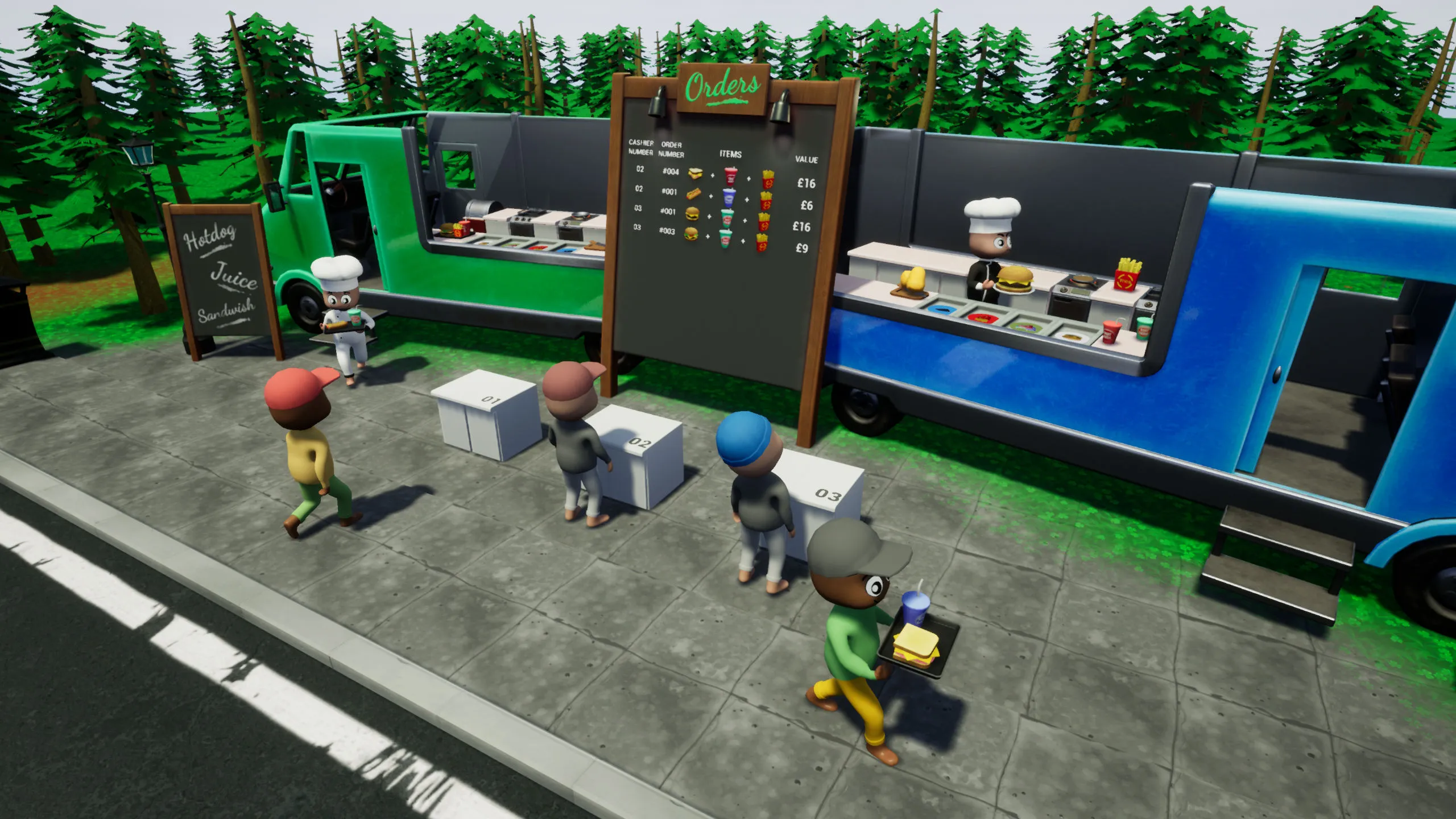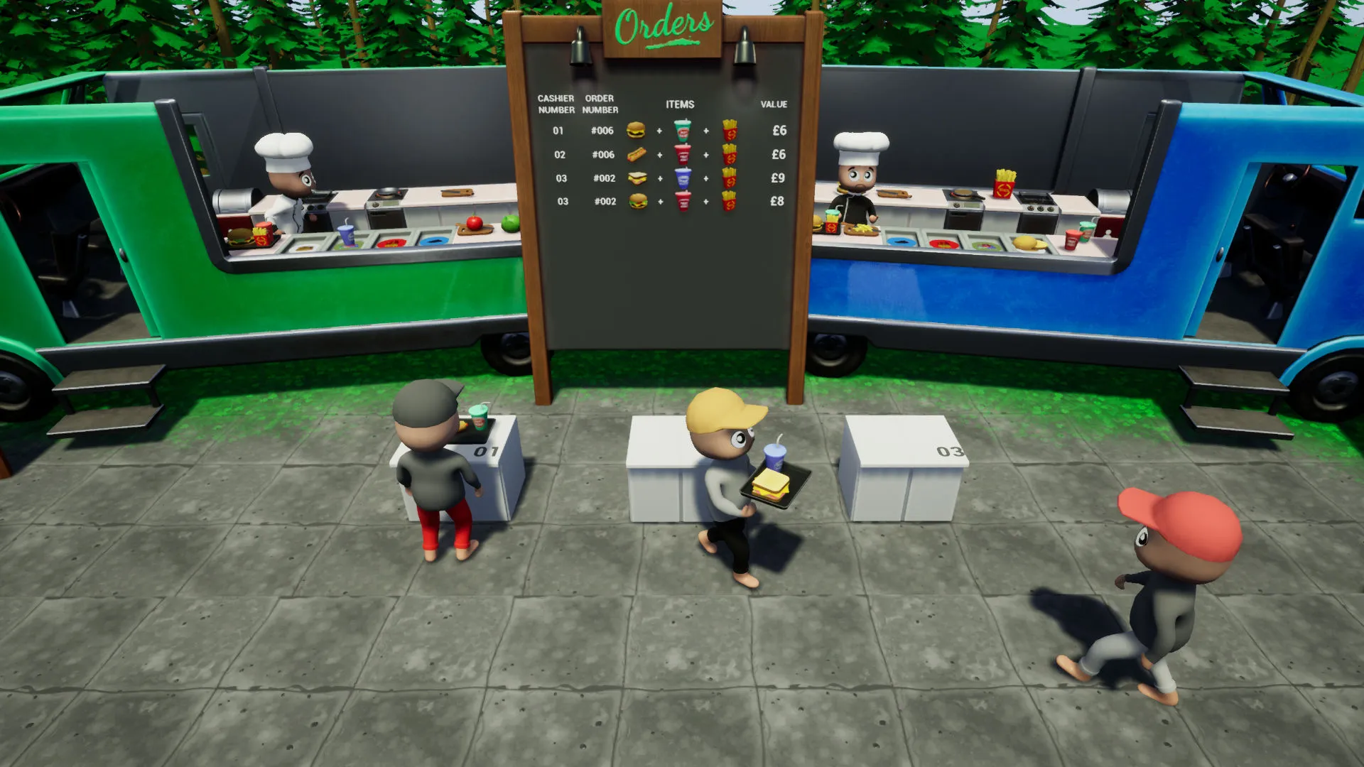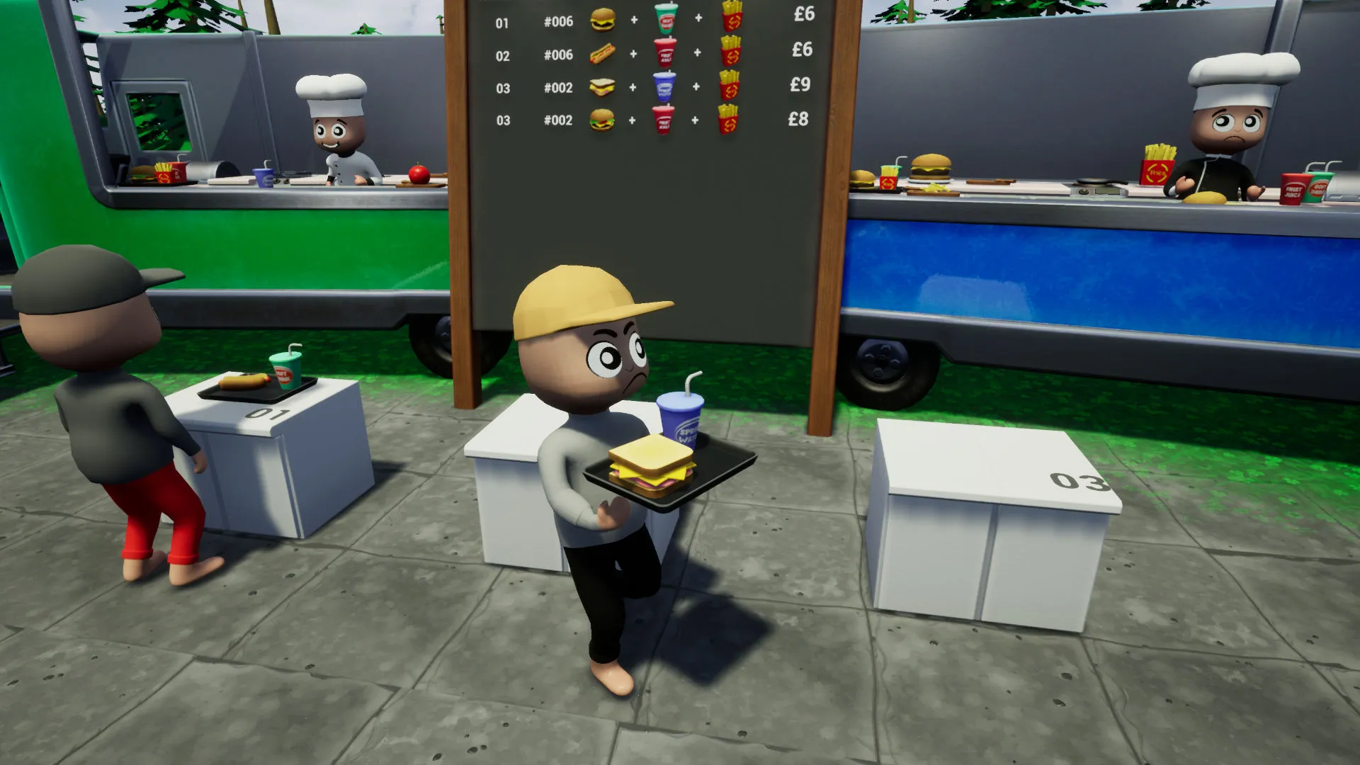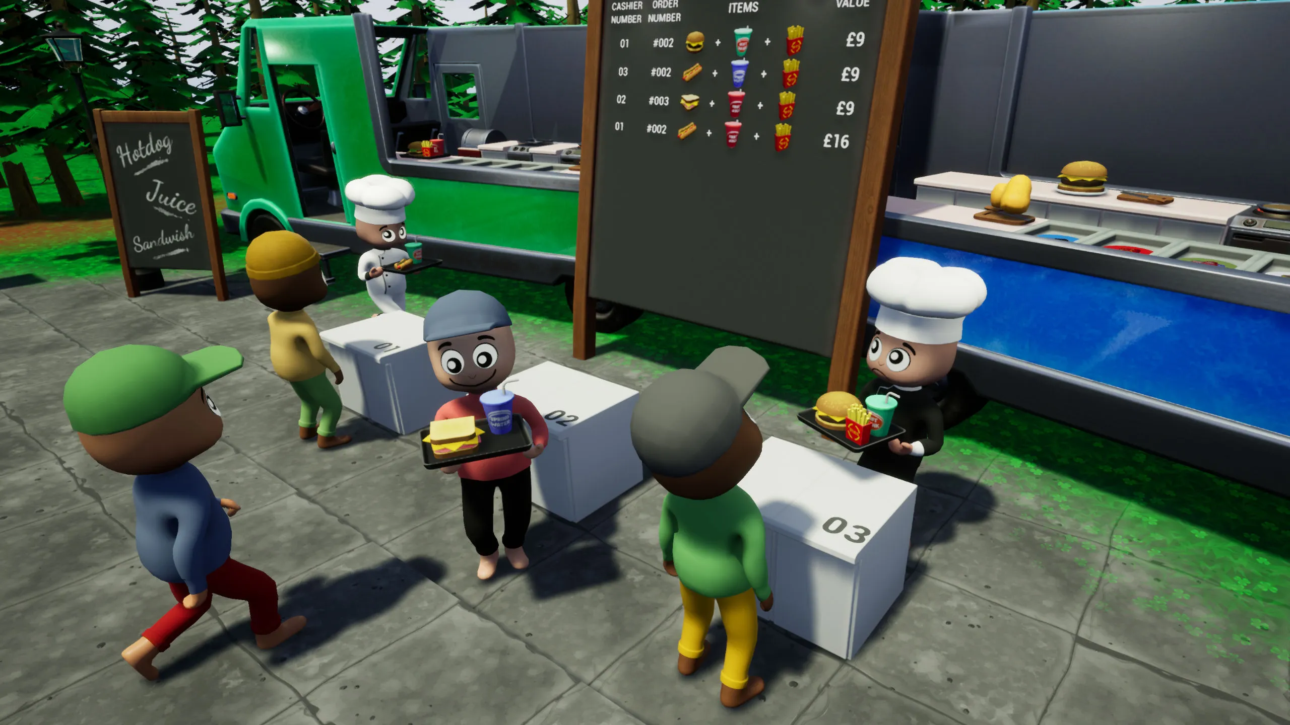Faster Fast Food is a multiplayer cooking simulation game for two teams. The dispute will be constant, as it will be one list of orders for two fast food sellers. Whoever does it first gets the money.