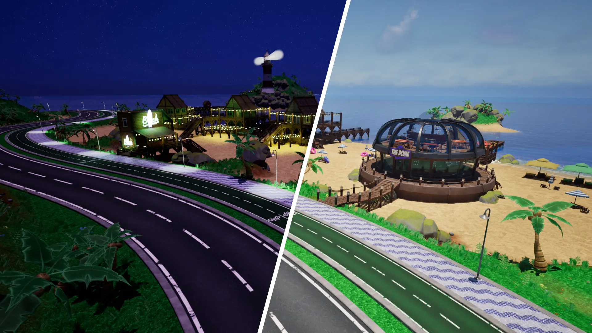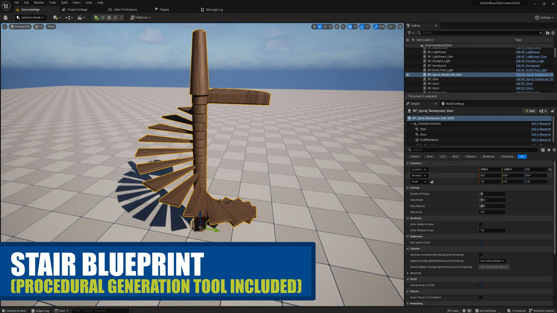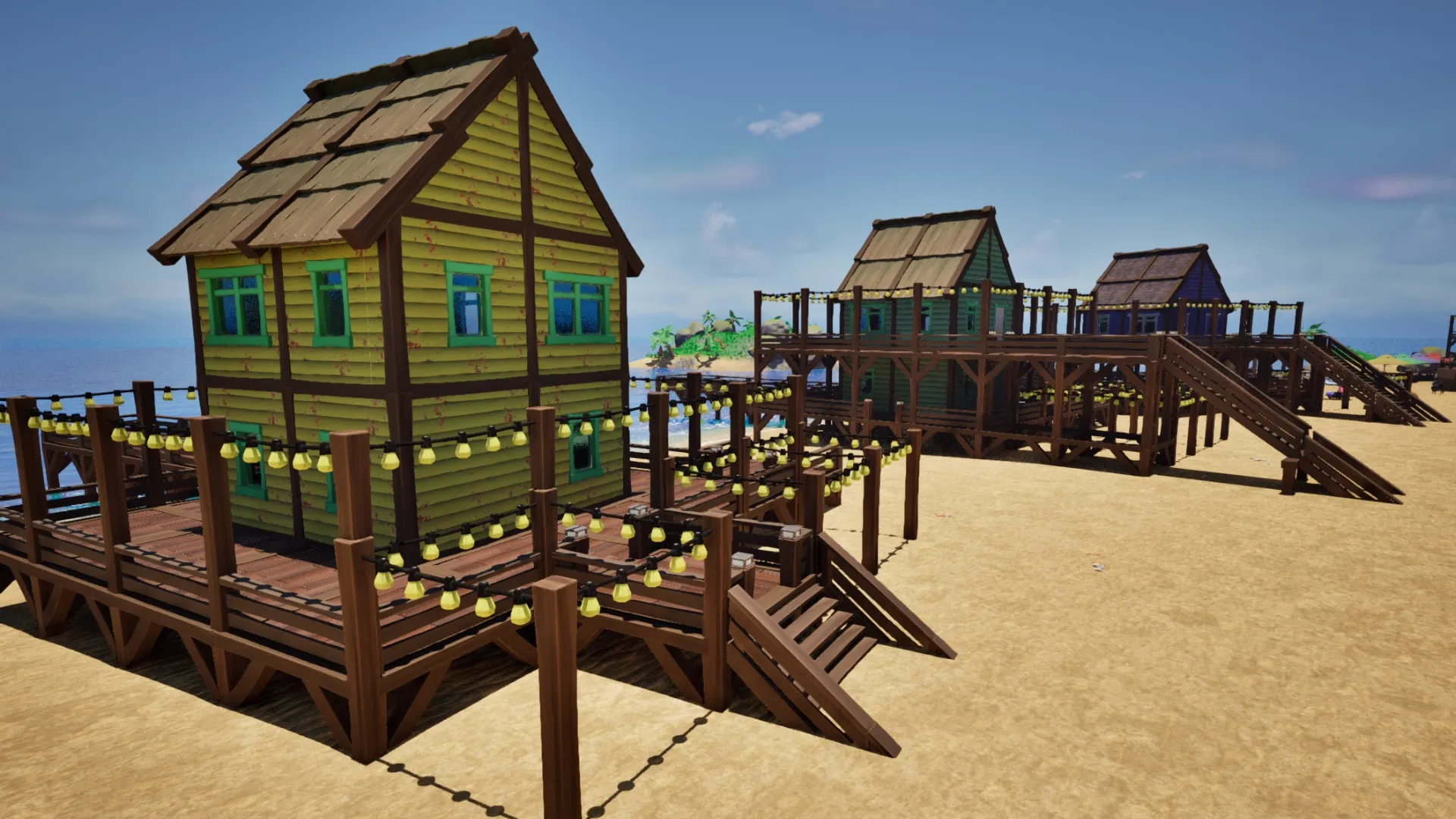 Escape to a tropical paradise with the 3D Stylized Beach Environment Pack for Unreal Engine. This complete 3D beach environment kit lets you build your own bright and sunny coastal scene. It includes 43 modular beach house pieces, 17 lighthouse sections, a full beachfront restaurant and store. Add palm trees, rocks, roads, and other beach props to fill out your island.