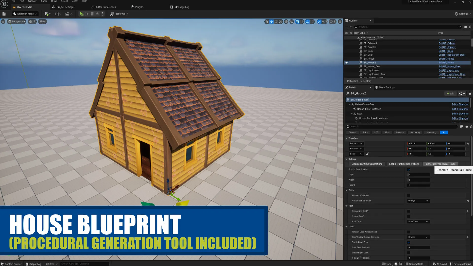 Use the included procedural generation tools to easily create docks, bridges, and more. With 130 materials, 268 textures, and handy blueprints you can customize your procedural and static meshes. Build a pier, lighthouse, and beach house. Create a day/night cycle and interactive doors, counters, and chairs. The stylized low-poly models have a charming, rounded aesthetic perfect for a relaxing tropical paradise.
