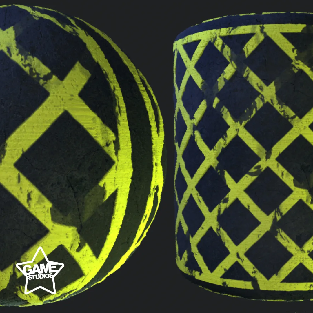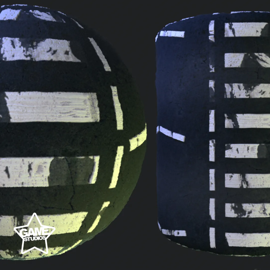 Stylized Asphalt ZigZag Line Crossing material this texture was created in Substance 3d Designer and render in Marmoset Toolbag.