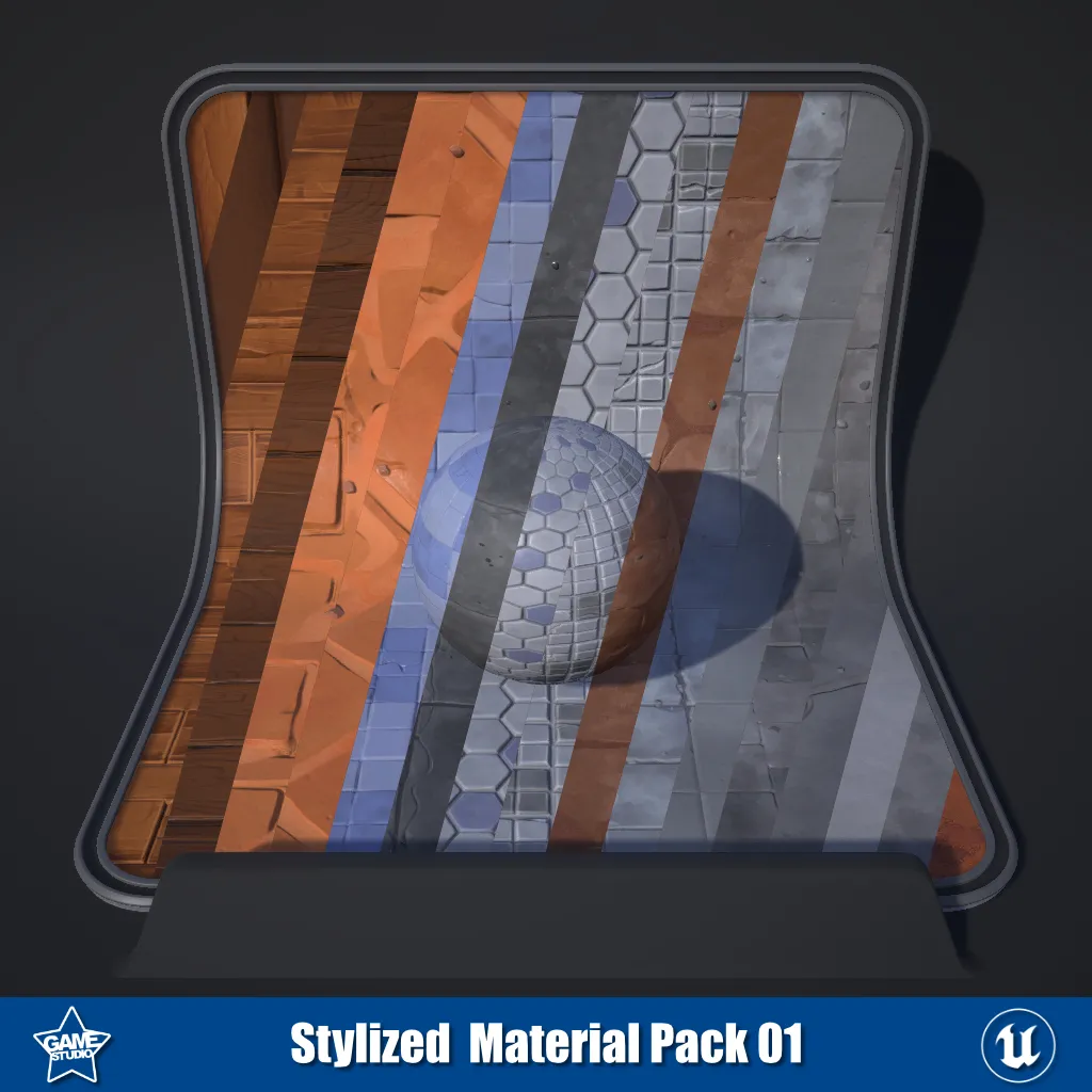 This Stylized Materials pack for Unreal Engine and Unity Engine includes 18 PBR materials perfect for creating stylized 3D environments. The pack contains a variety of floor, wall, tile, concrete, ceramic, wood, and desert materials in 4096x4096 to 1024x1024 resolutions. Highlights include 2 desert tile materials, 2 wood floor materials, 2 wood wall materials, 2 concrete materials, 1 cracked concrete material, 1 ceramic material, and 8 tiled materials. With this diverse set of 18 PBR materials, you'll have everything you need to build stunning stylized 3D scenes. Download now to bring your stylized projects to the next level!