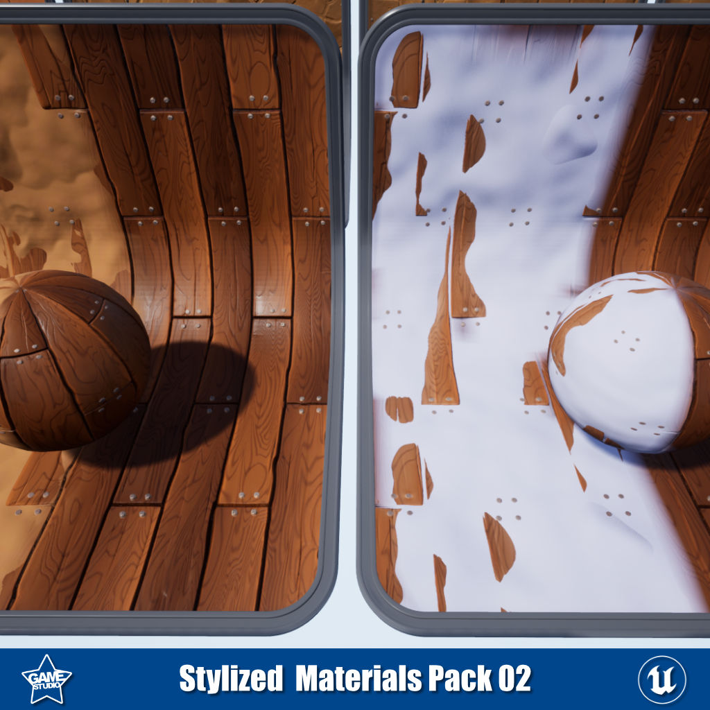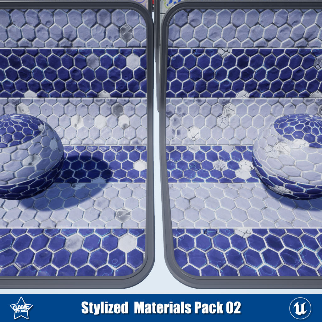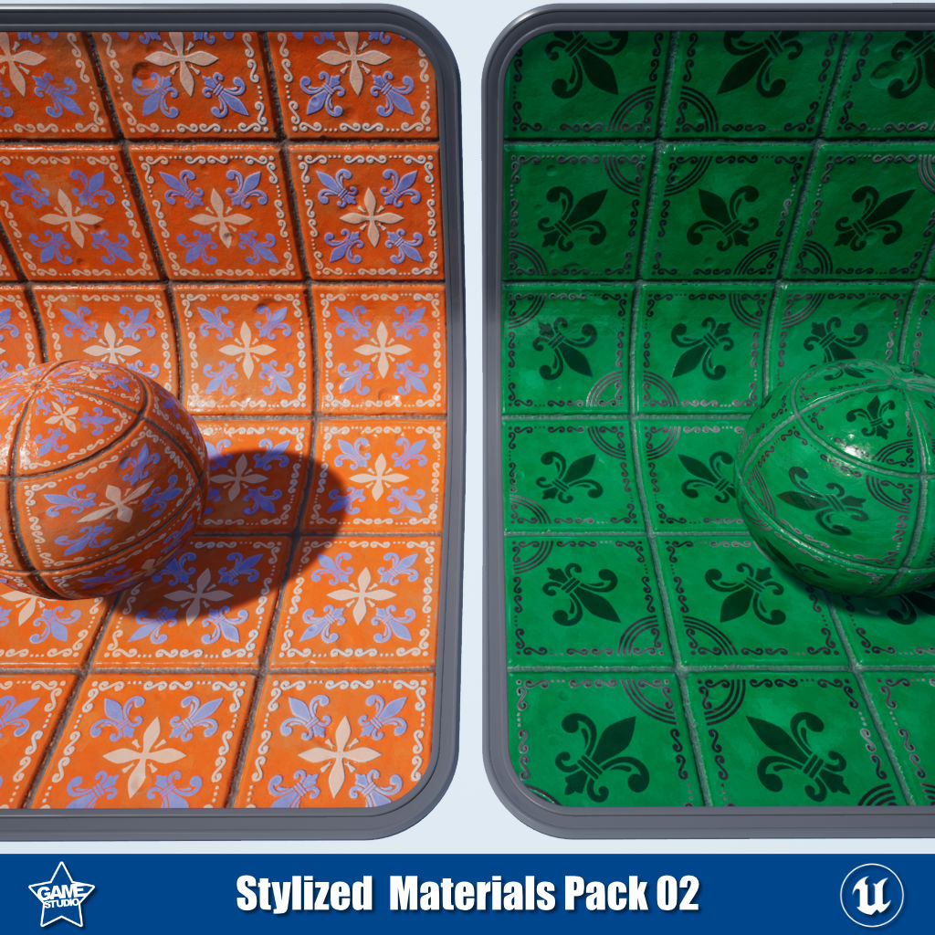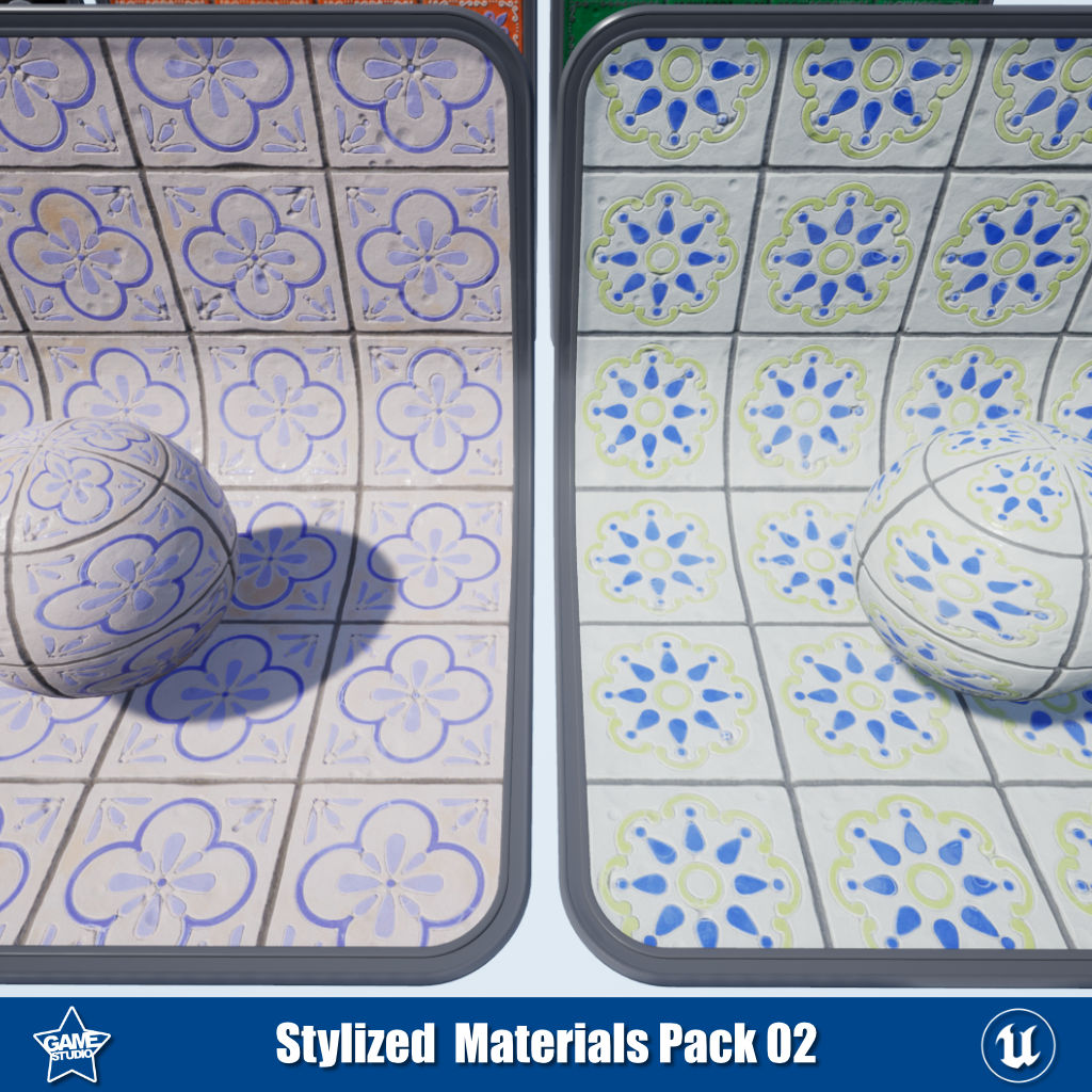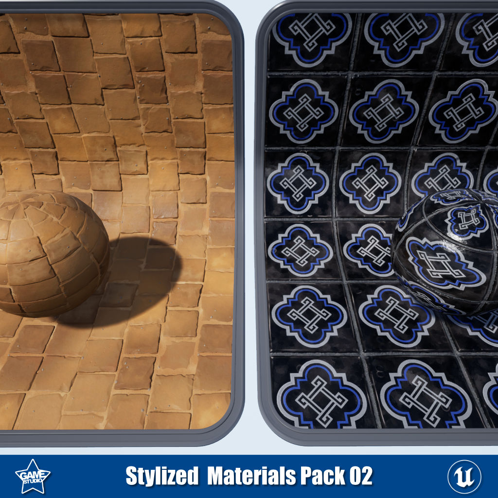 This stylized materials pack includes 26 PBR materials for Unreal Engine and Unity, perfect for creating stylized 3D environments. The pack contains versatile flooring with wood, tile, and Portuguese tile materials to build floors. It also includes 5 desert tile materials for creating desert environments. The wood floor materials feature vertex painting channels, allowing you to paint snow, sand, or dirt effects. With this pack, you can quickly design eye-catching stylized scenes with customized ground textures. The materials are optimized for game engines and 3D projects requiring a hand-painted aesthetic.