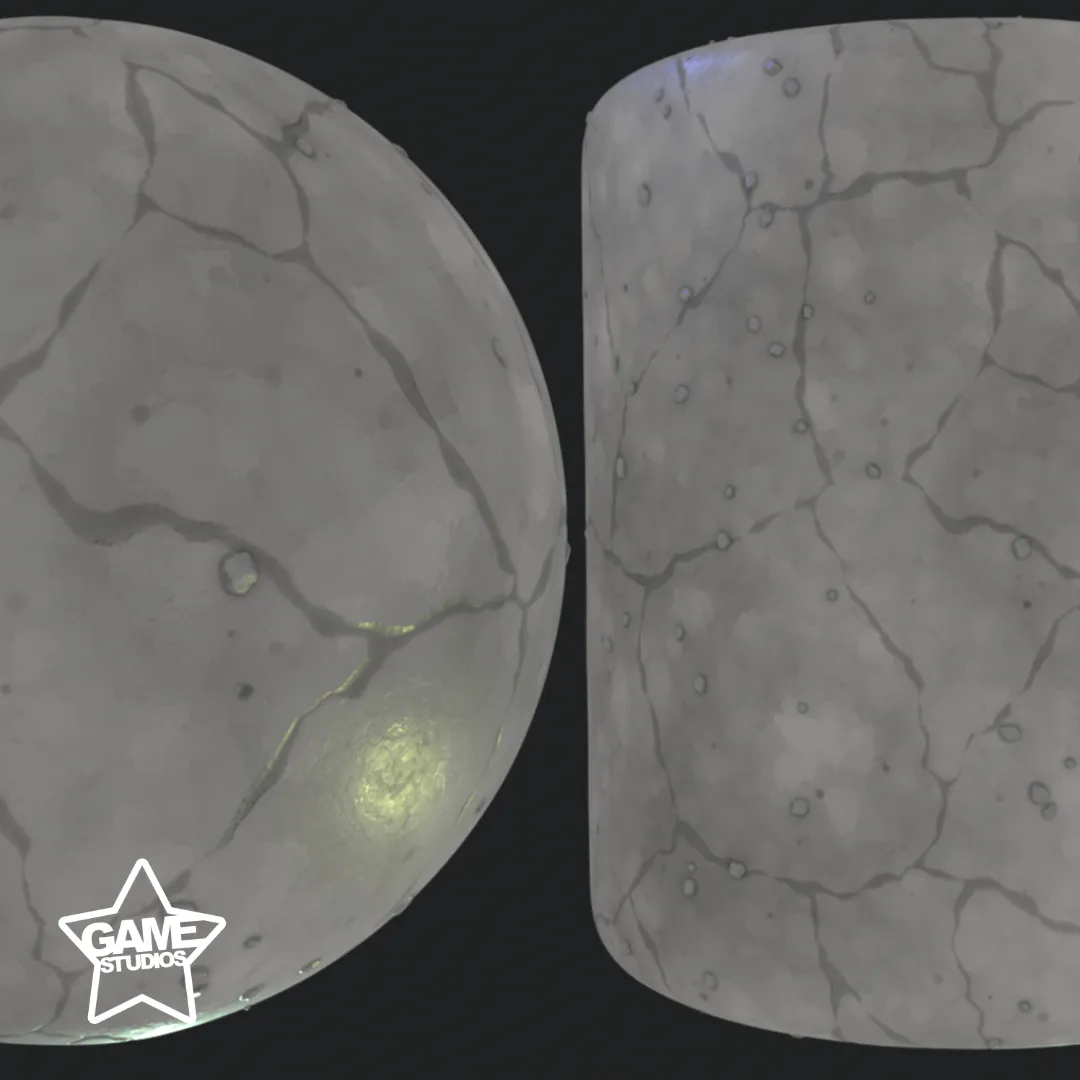 Stylized cracked concrete material this texture was created in Substance 3D Designer and render in Marmoset Toolbag.