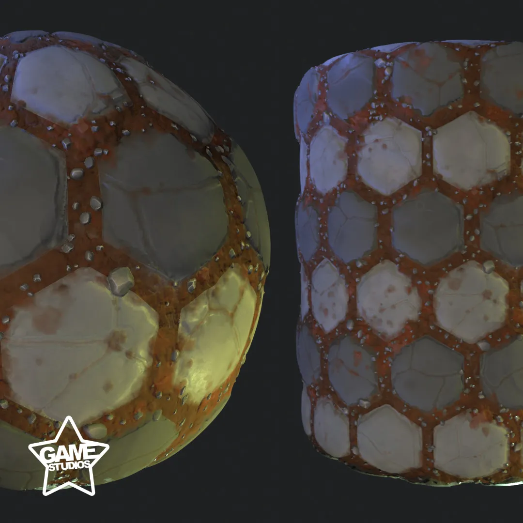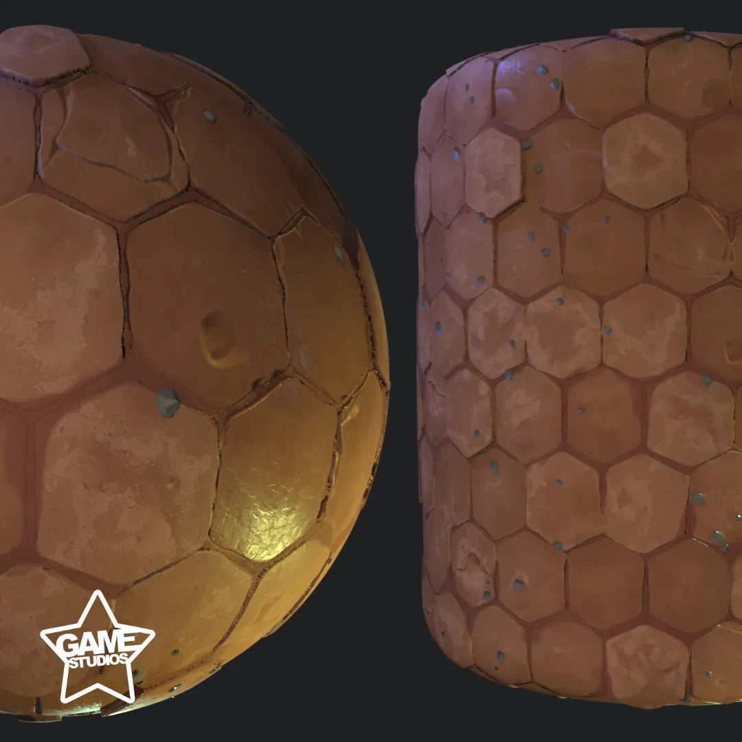 Stylized brown hexagon tile material was created in Substance Designer and render in Marmoset Toolbag.
