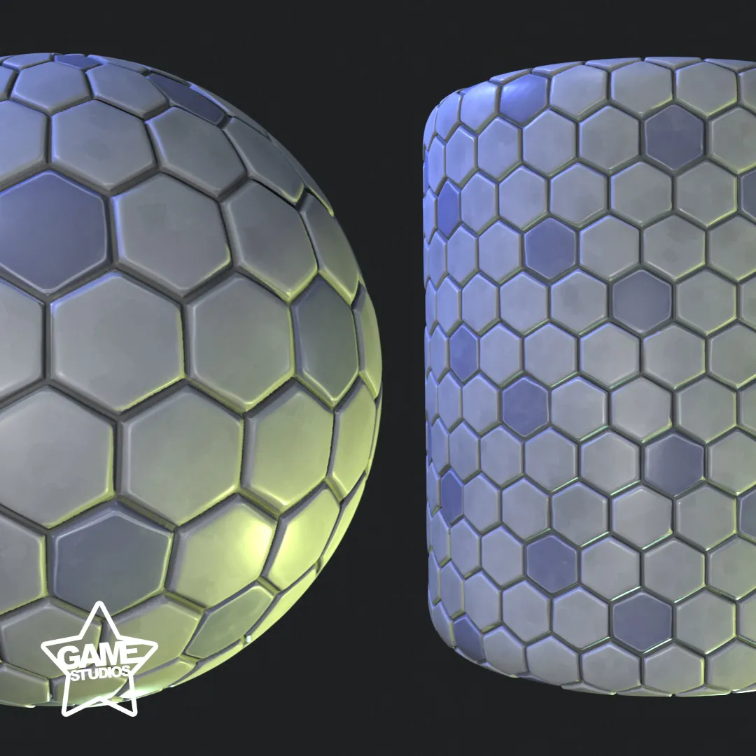 Stylized blue hexagon tile material was created in Substance Designer and render in Marmoset Toolbag.