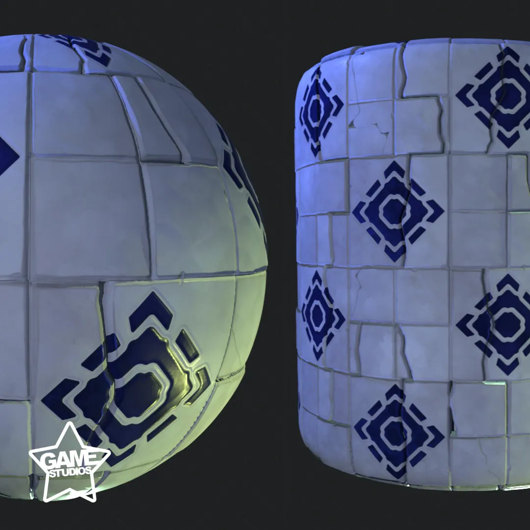 Stylized blue squared tile material was created in Substance Designer and render in Marmoset Toolbag.