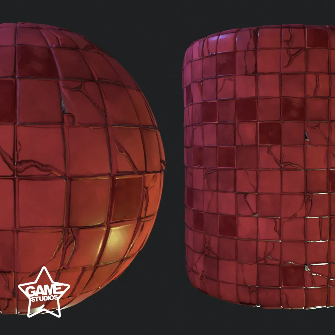 Stylized red square tile material was created in Substance Designer and render in Marmoset Toolbag.