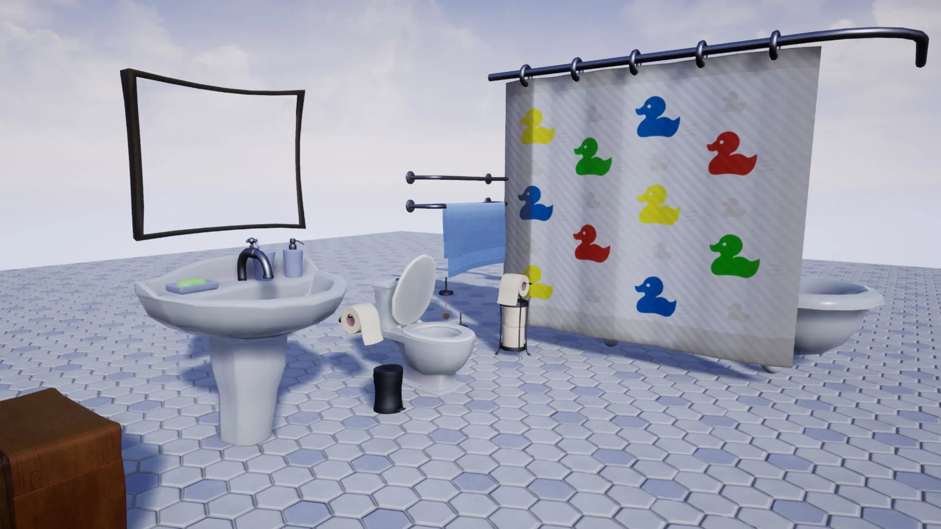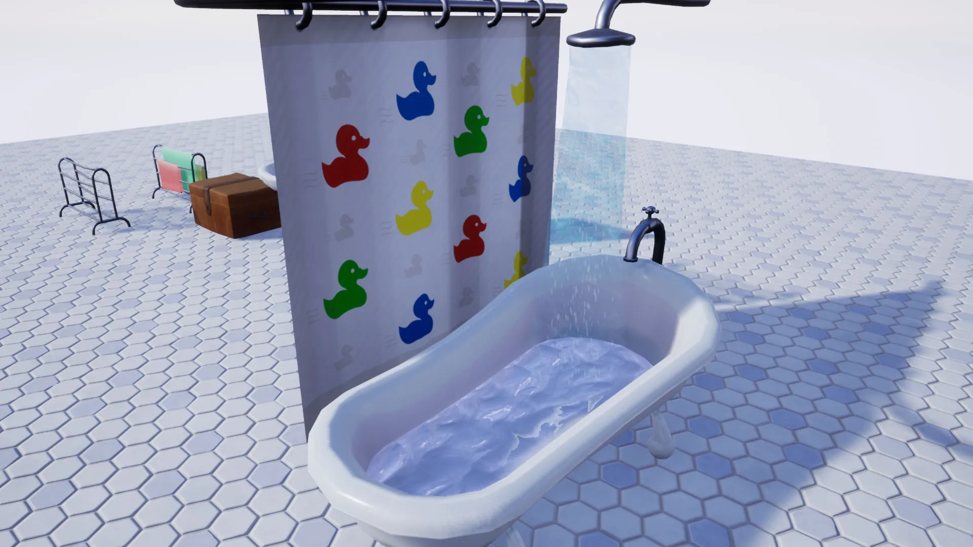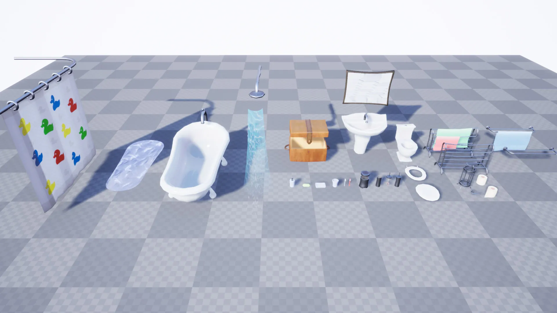 3D Furniture Props (Stylised, Bath, Sink, Shower, Towel, Chest)